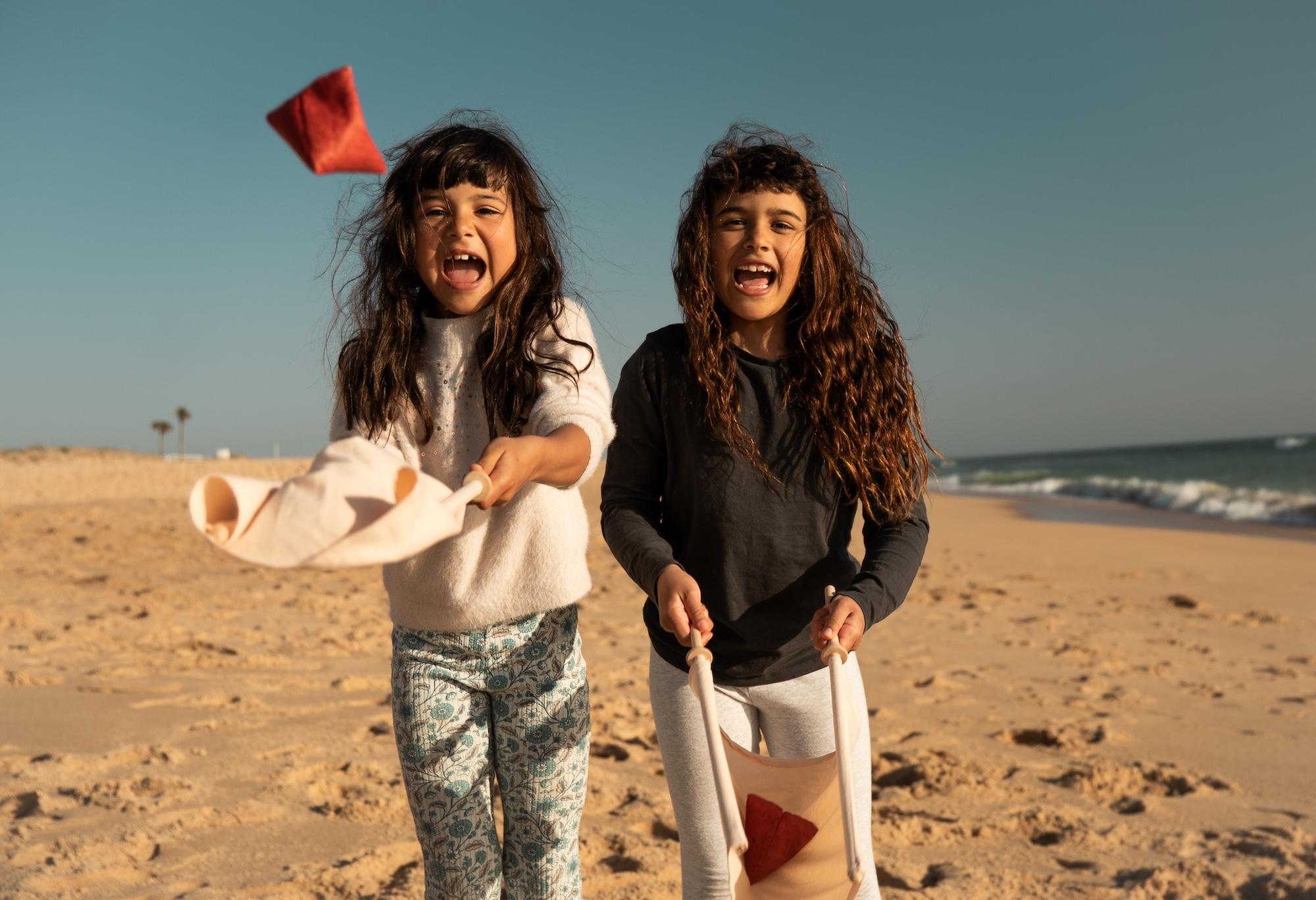 Draußen – im Garten, im Park oder am Strand – überzeugt flup mit robusten, wetterbeständigen Materialien. Das Wurfsäckchen fliegt stabil auch bei Wind und ist dank seiner leuchtenden Farbe in Wiese oder Sand gut sichtbar.