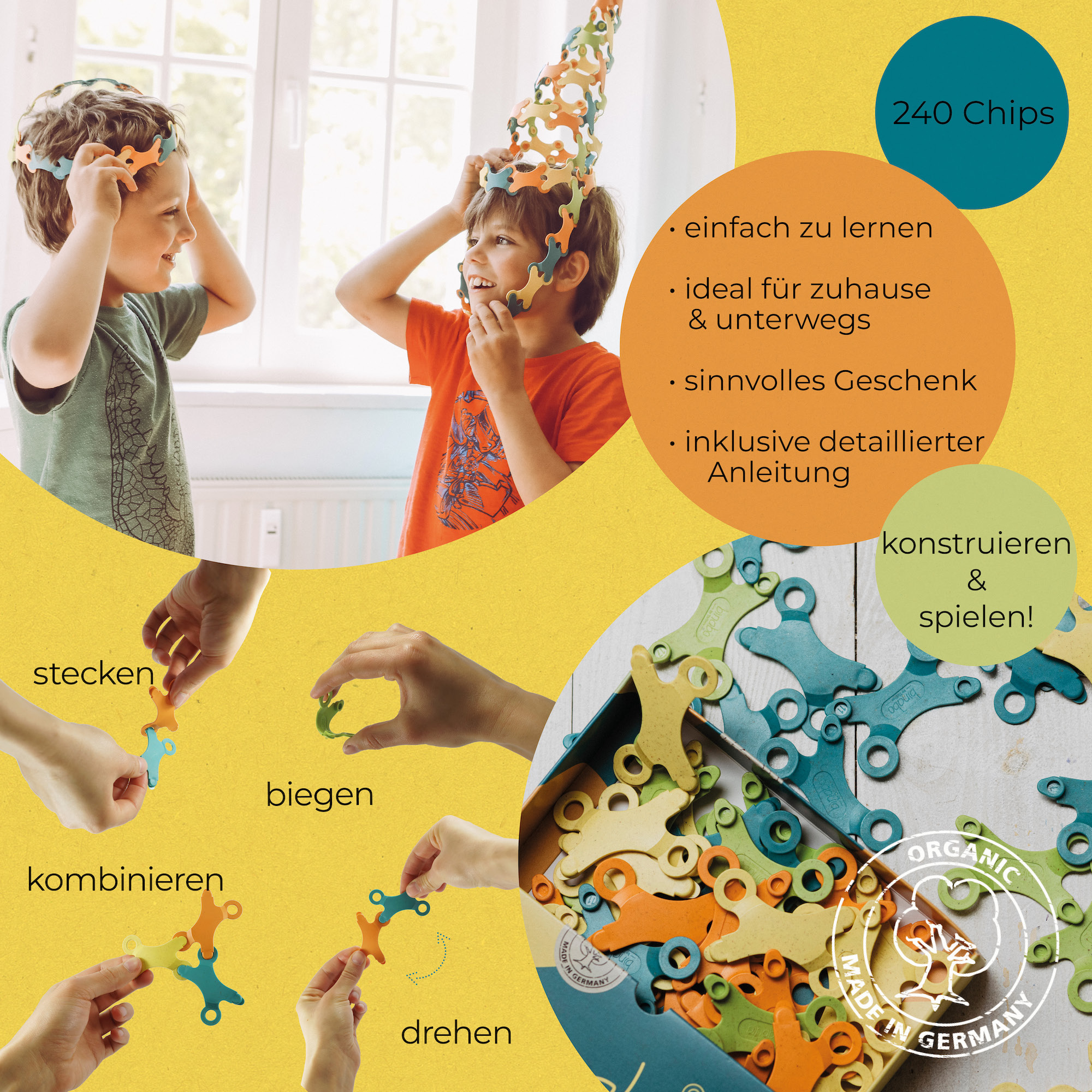 Mit Binabo laden wir zu grenzenlosem Spielspaß ein, der Kreativität und Bewegung verbindet. Unser patentiertes Stecksystem ermöglicht es, aus nur einem Bauteil unzählige Formen und Spielideen zu erschaffen – und diese anschließend auch wirklich zu benutzen.